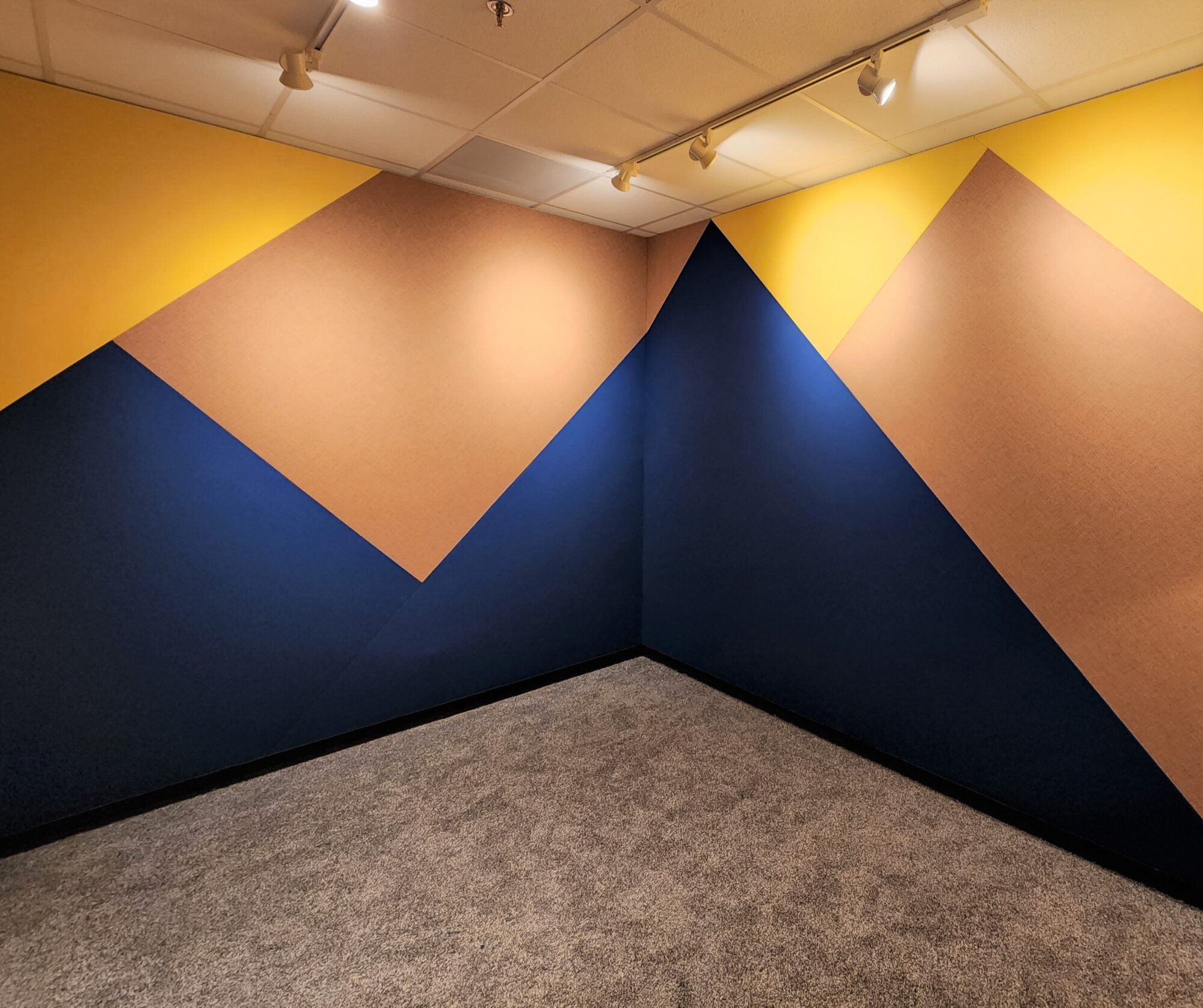 The FabriTRAK® System incorporates over 50 profiles of wall and ceiling trak, infill and fabric, and is designed to reduce Hertz levels (noise), enhance speech clarity and privacy, and provide an excellent articulation index, all while allowing designers total creativity in an interior space.